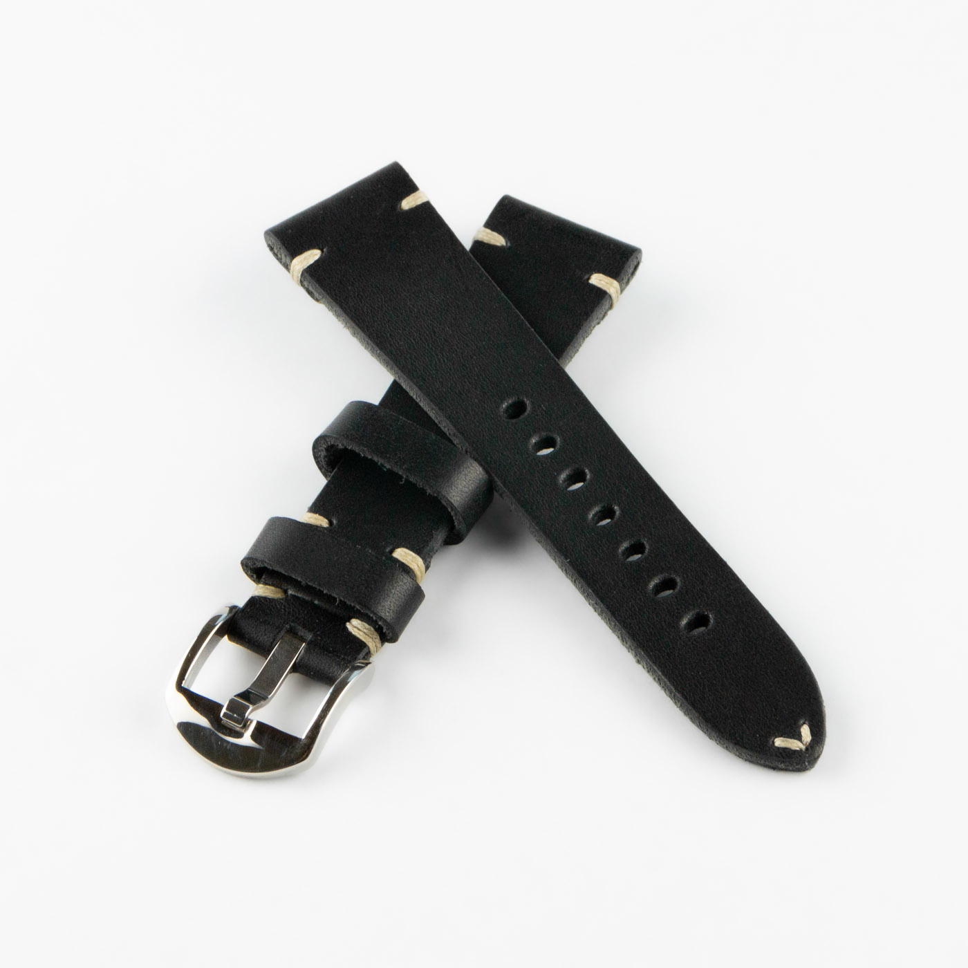 Lækker vintage læderrem af mokkafarvet, robust okselæder i klassisk design med cremefarvede syninger fra tyske Happel. Remmen er håndlavet af vintagelæder, der er ældet forskelligt, hvorfor hver læderrem har en unik patina og nuance og dermed et unikt udseende, der fuldender vintagelooket. Dette er kvalitetslæderremmen, der rækker ind i den horologiske historie og tager det bedste med sig til nutiden.