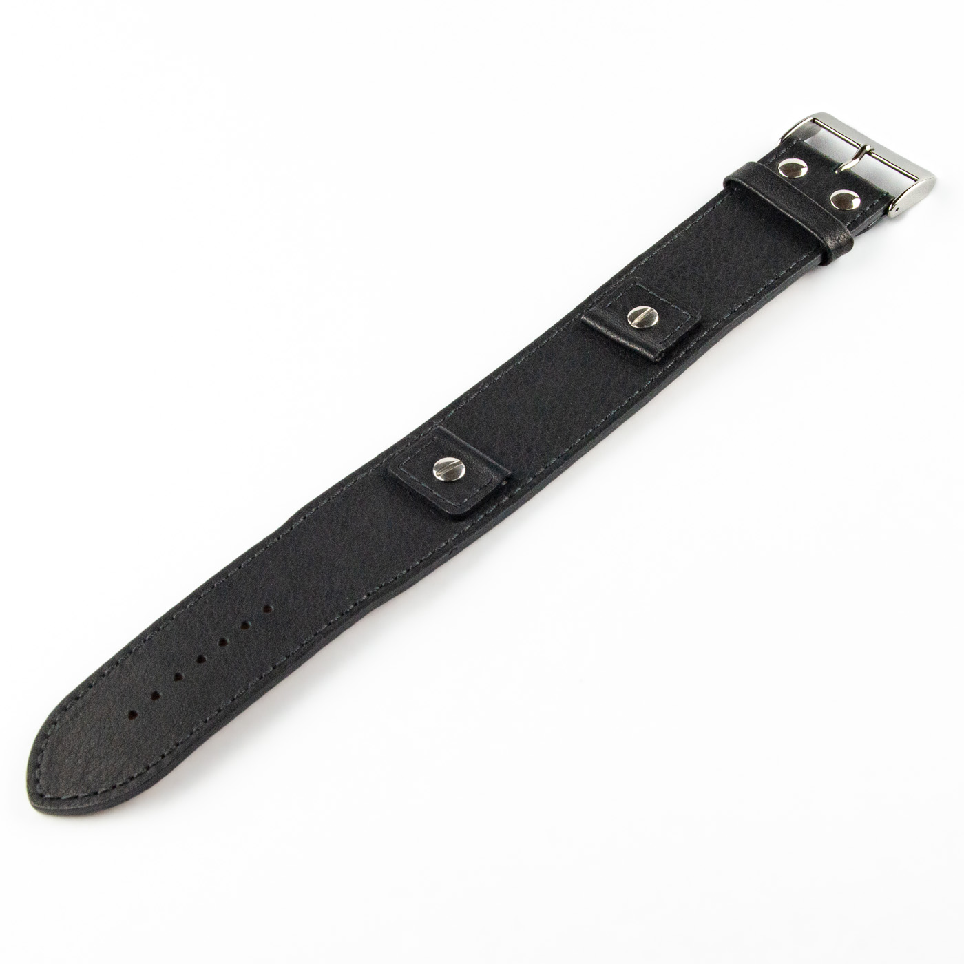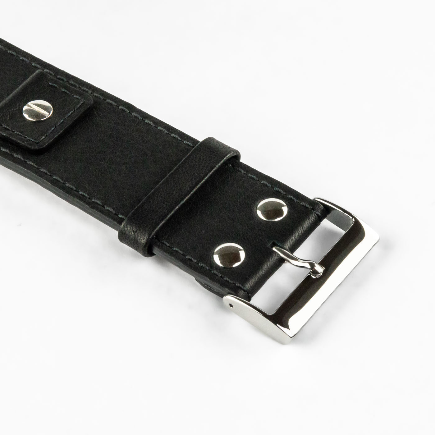 Denne klassiske bund-rem i sort okselæder fra tyske Eulit er med sin brede profil på 32 mm en læderrem, der kaster tankerne tilbage til 1970'erne. For selvom denne stil oprindeligt blev brugt af piloterne i det tyske luftvåben (Luftwaffe) under anden verdenskrig, så er den for mange kendeteget ved den renæssance, den fik i halvfjerdserne, hvor man kunne se filmstjerner som Robert Redford of Paul Newman med en bund-rem på.