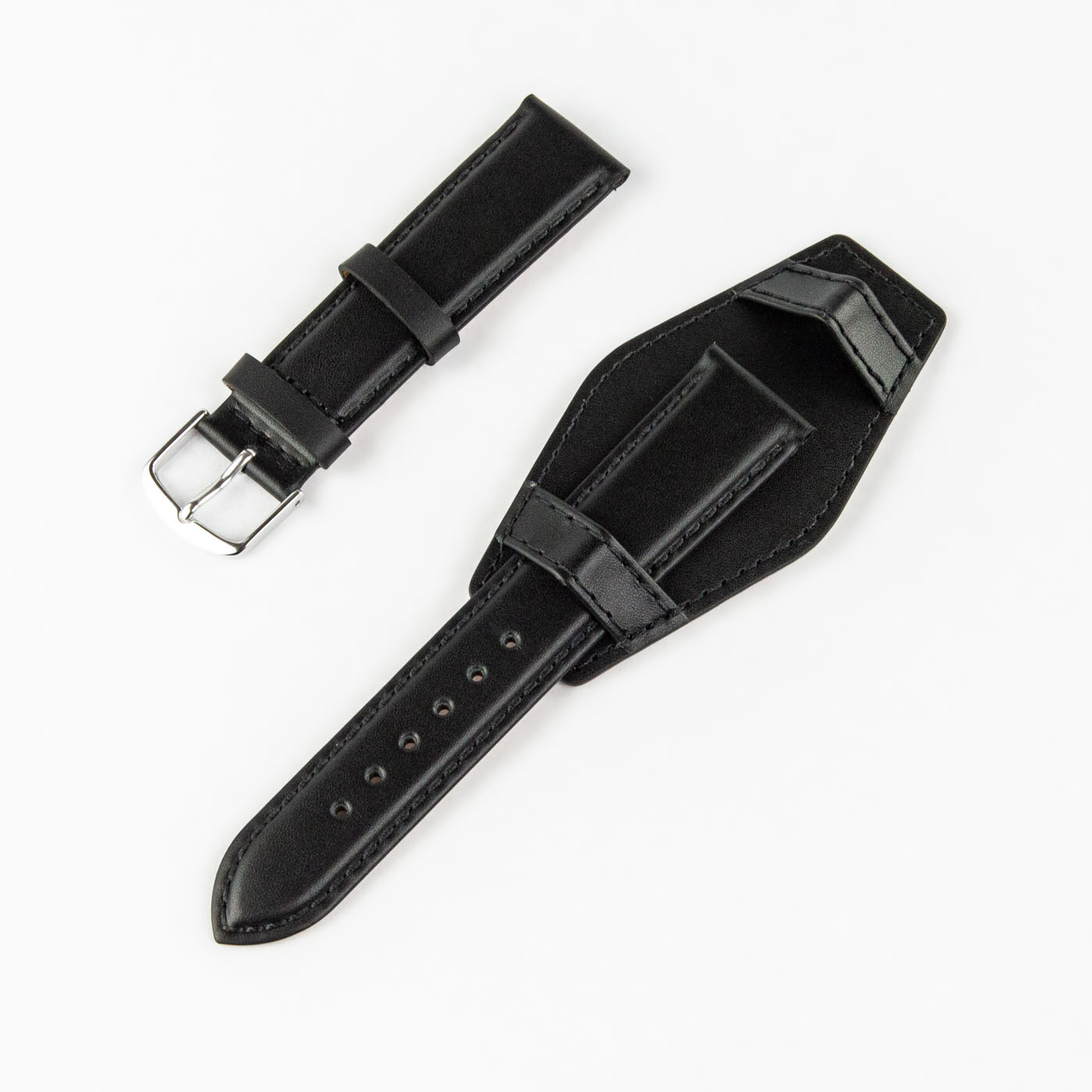 Det skal bemærkes, at denne bund-lædderrem ikke kan anbefales til ure med en længde fra horn til horn på over 50 mm.