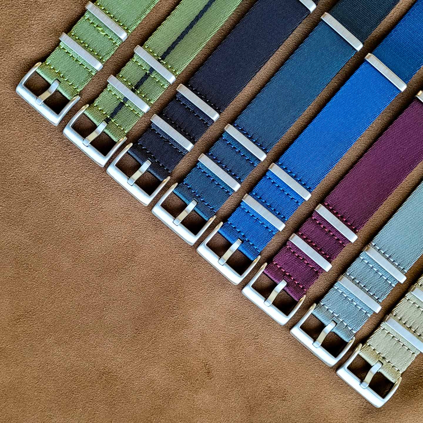 Denne komfortable og stilsikre natorem er fremstillet af blød nylontråd, hvilket giver stoffet en blød og føjelig struktur med en silkeagtig glans og fornemmelse. Spændet er af børstet rustfrit stål, der giver en flot kontrast til den lette glans i stoffet.