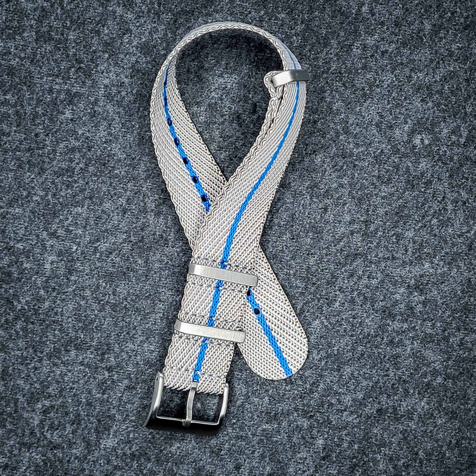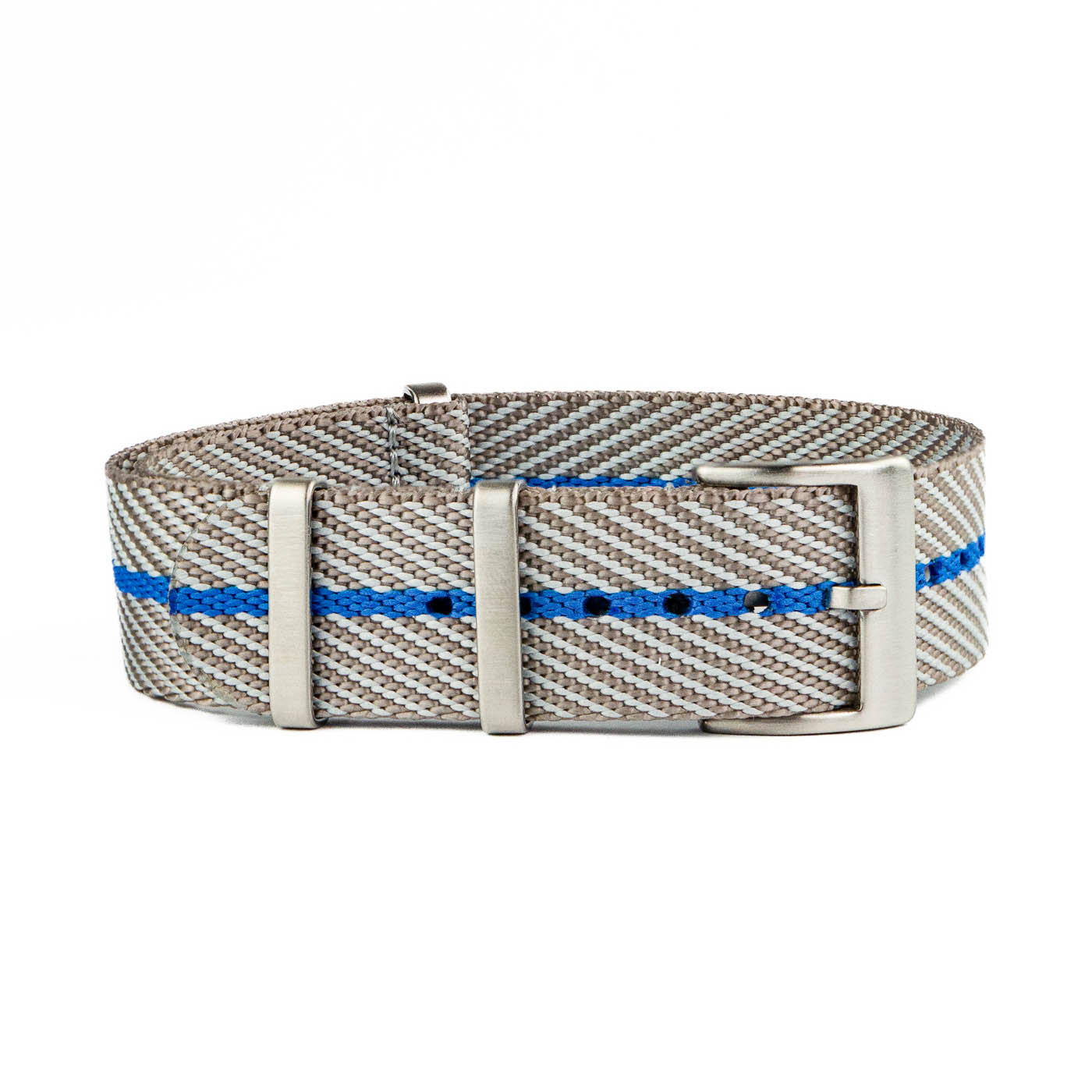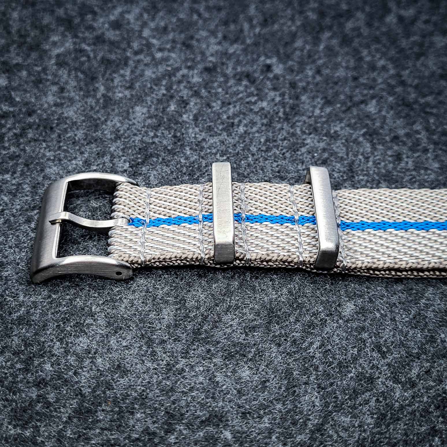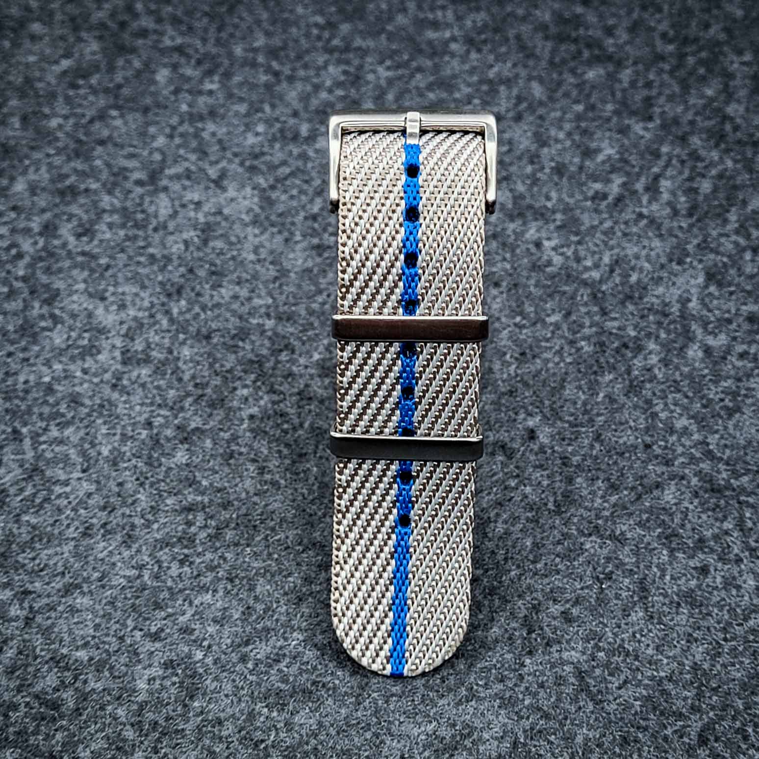 Natorem i Tudor-stil er inspireret af britiske regimenters unikke brug af farver og mønstre til at skabe identitet og korpsånd, der er særegen for netop det givne regiment. Urremmen fås i 18, 20 og 22 mm, den er 1,2 mm tyk og fremstillet af nylontråd, der gør den komfortabel og giver en let glans i stoffet. Spændet er i børstet, rustfrit stål.