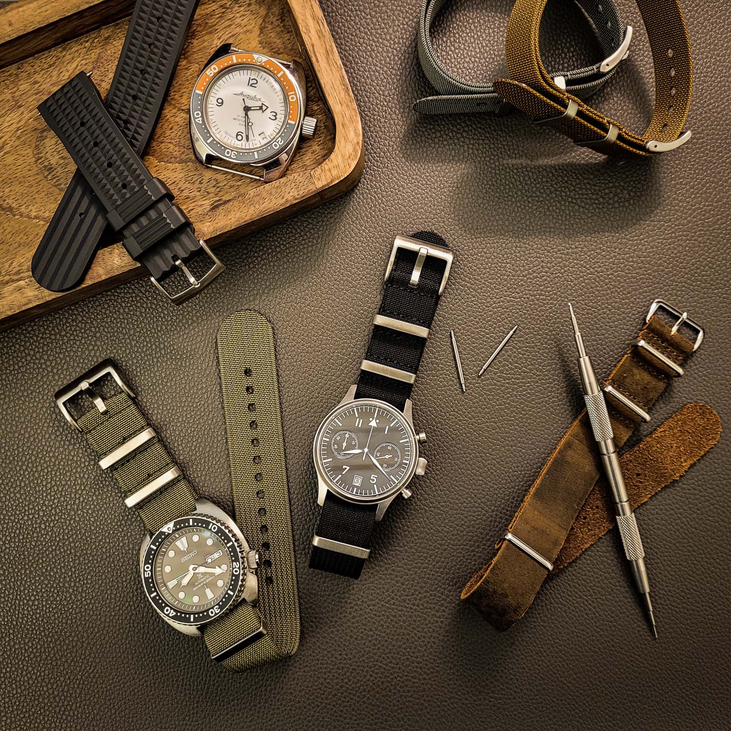 Denne riflede natorem, også kendt som en ribbed natorem, adskiller sig fra vores øvrige nato-udvalg. For hvor de øvrige natoremme generelt synes inspirerede af militærhistorie, så er det oftest den del af et givent militær, der omhandler pomp og pragt. Det lider denne riflede nato ikke under. Her er tale om en natorem, der nok synes at være inspireret af militært brug, men i så fald hverdagsbrug. For hvor de øvrige natoremme i sortiment har glans, har den riflede natorem ydmyghed - den er grundlæggende mere underspillet og diskret. Det hindrer den dog ikke i at have sin egen distinkte stil og følelse. Den riflede natorem er således mere 'grov' eller rå i sit udtryk, omend den stadig er komfortabel.