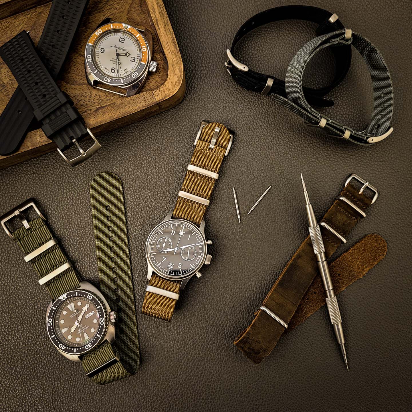 Denne riflede natorem, også kendt som en ribbed natorem, adskiller sig fra vores øvrige nato-udvalg. For hvor de øvrige natoremme generelt synes inspirerede af militærhistorie, så er det oftest den del af et givent militær, der omhandler pomp og pragt. Det lider denne riflede nato ikke under. Her er tale om en natorem, der nok synes at være inspireret af militært brug, men i så fald hverdagsbrug. For hvor de øvrige natoremme i sortiment har glans, har den riflede natorem ydmyghed - den er grundlæggende mere underspillet og diskret. Det hindrer den dog ikke i at have sin egen distinkte stil og følelse. Den riflede natorem er således mere 'grov' eller rå i sit udtryk, omend den stadig er komfortabel.