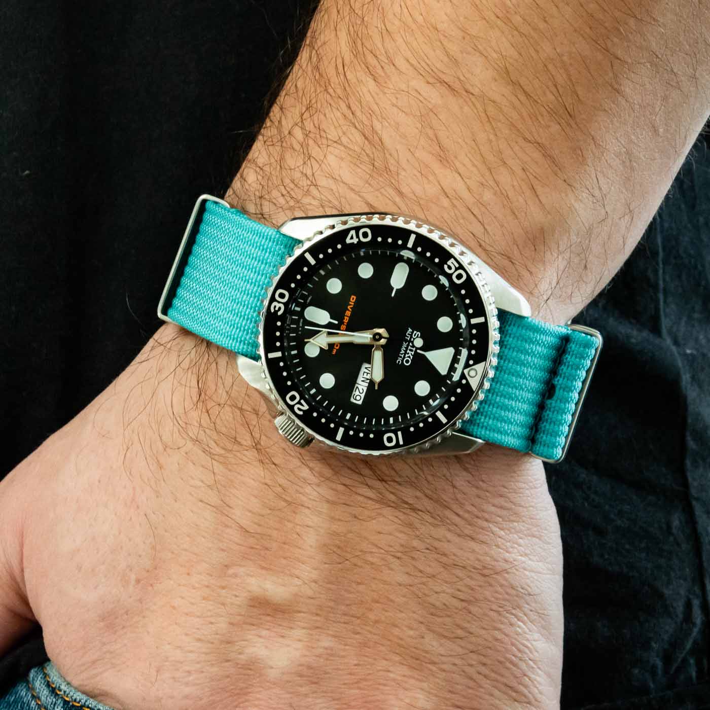 Denne riflede natorem, også kendt som en ribbed natorem, adskiller sig fra vores øvrige nato-udvalg. For hvor de øvrige natoremme generelt synes inspirerede af militærhistorie, så er det oftest den del af et givent militær, der omhandler pomp og pragt. Det lider denne riflede nato ikke under. Her er tale om en natorem, der nok synes at være inspireret af militært brug, men i så fald hverdagsbrug. For hvor de øvrige natoremme i sortiment har glans, har den riflede natorem ydmyghed - den er grundlæggende mere underspillet og diskret. Det hindrer den dog ikke i at have sin egen distinkte stil og følelse. Den riflede natorem er således mere 'grov' eller rå i sit udtryk, omend den stadig er komfortabel.