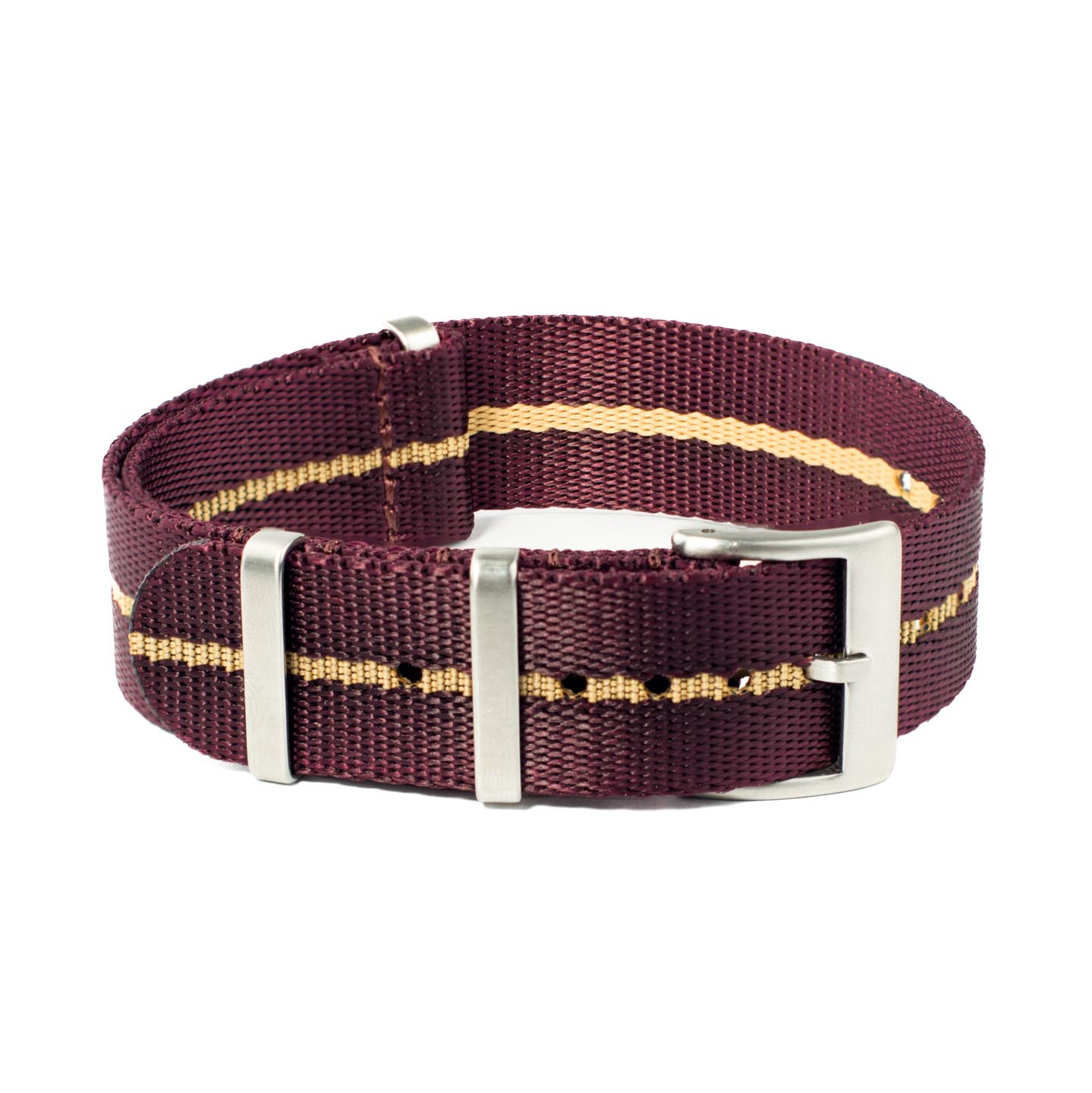 Natoremme med præget stribe tager det bedste fra to af vores andre natoremme - nemlig natoremme i Tudor-stil og Heavy Duty Natoremme, mens dens prægede stribe gør den til sin egen. For fra Heavy Duty-nato'erne har den sin vævning og glans, der give den prægede nato et bydende tilstedevær, og fra Tudor-remmene har den sin fine elgance med en stribe, der giver kontrast og vækker militær-historiske associationer om pomp, pragt og traditioner.