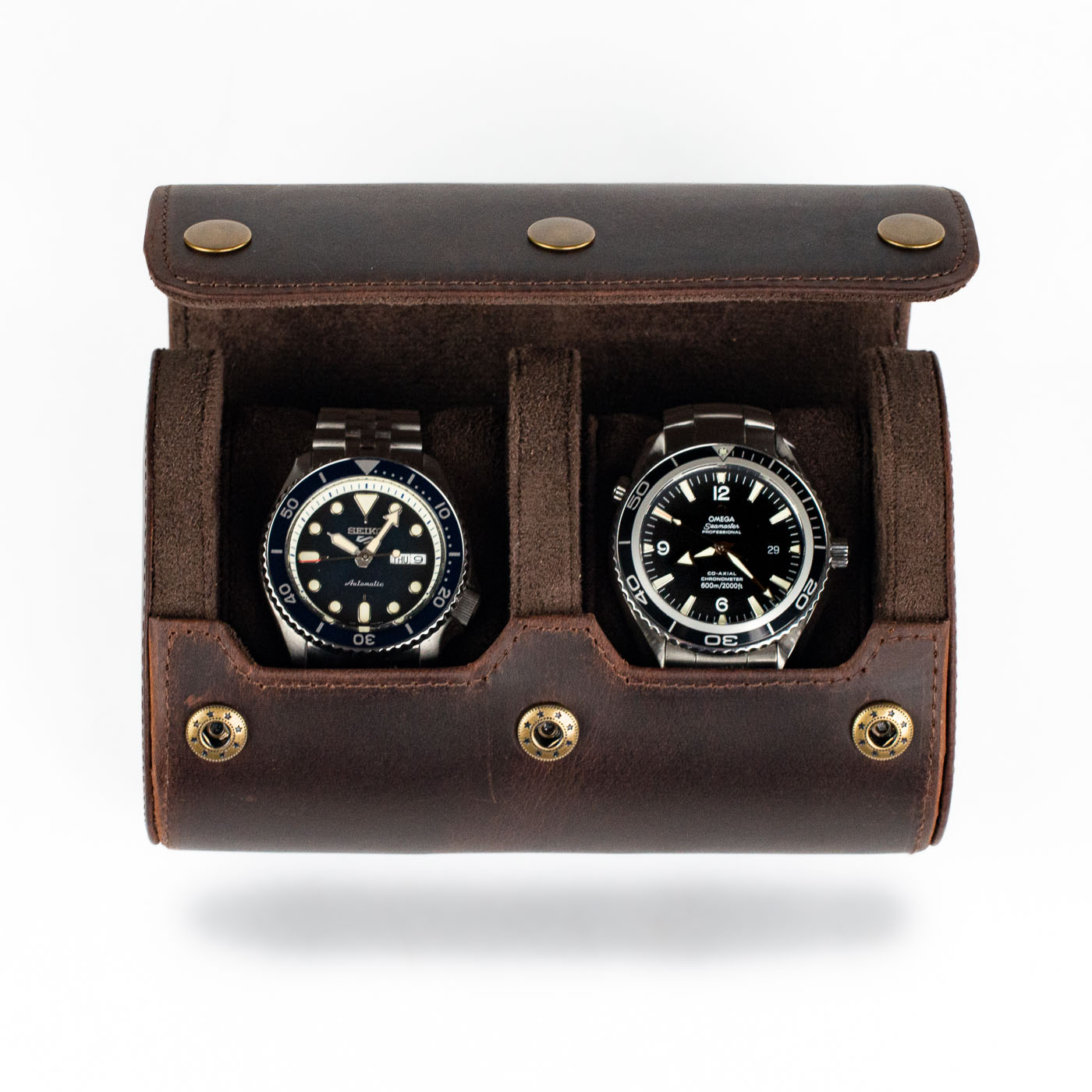 Watch Roll til to ure i crazy horse-læder - Mørkebrun