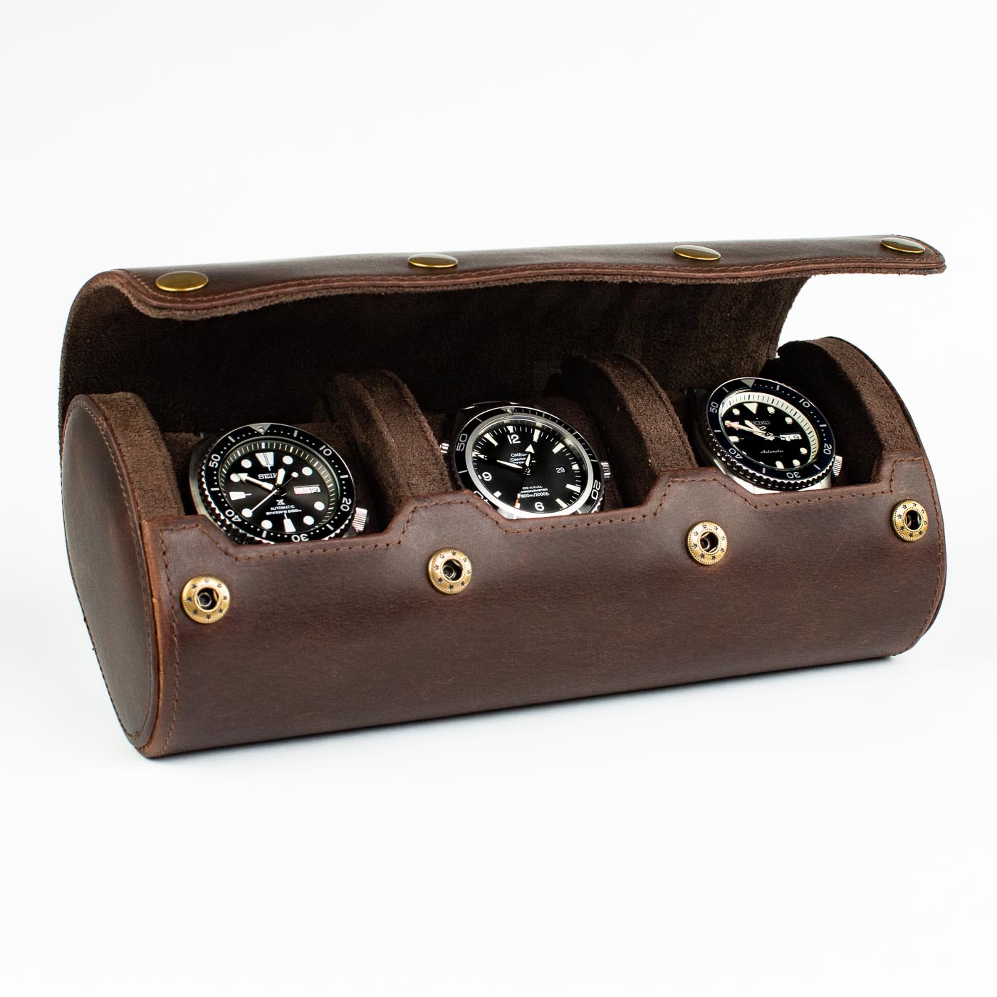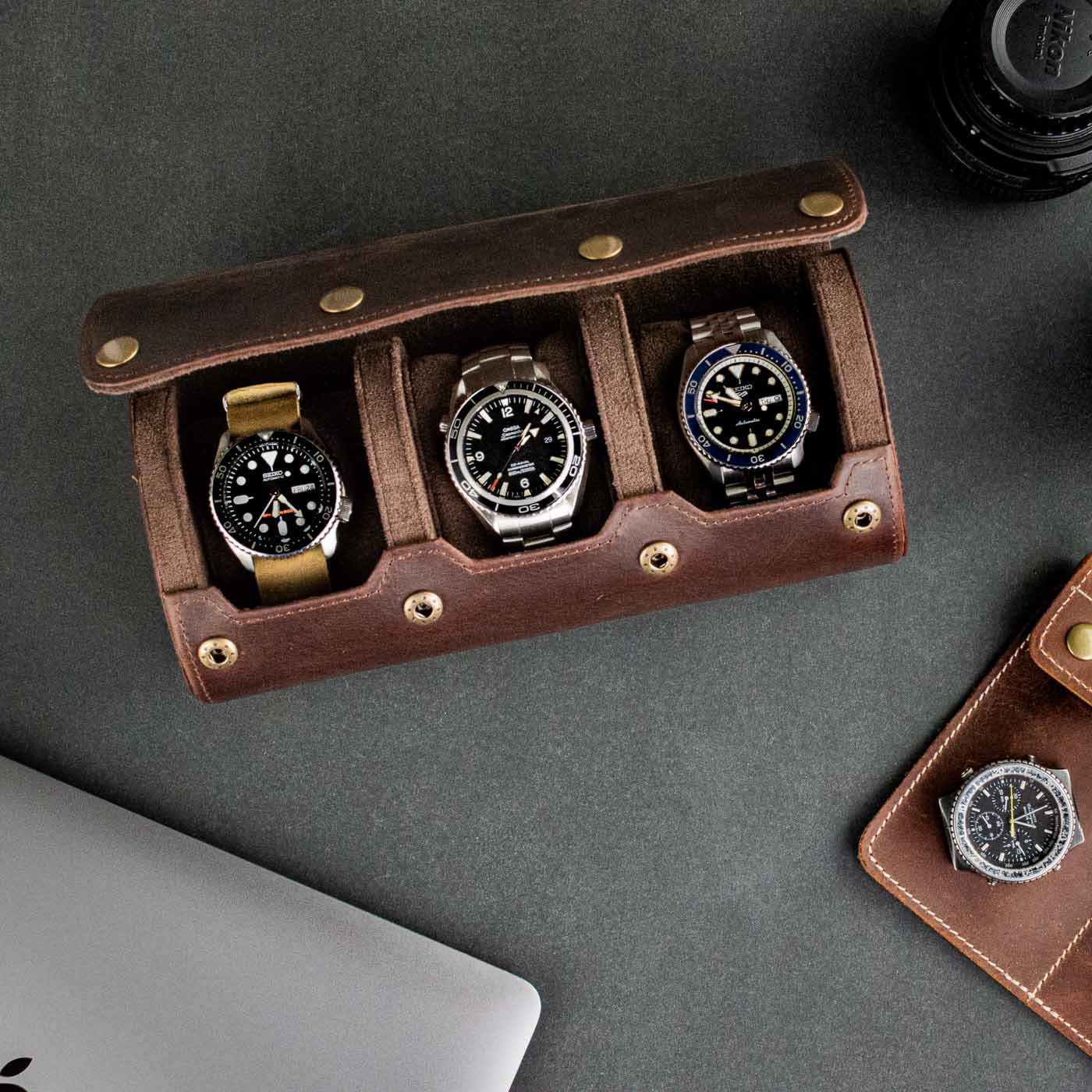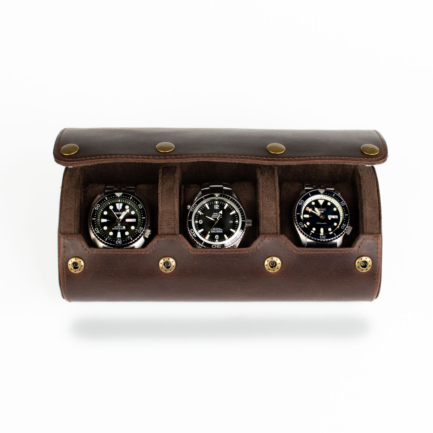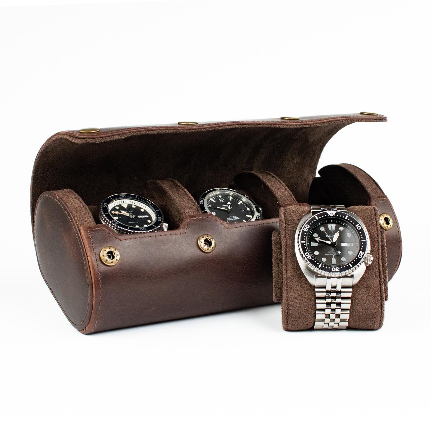 Watch Roll til tre ure i crazy horse-læder - Mørkebrun Dag til dag levering med Post-Nord!