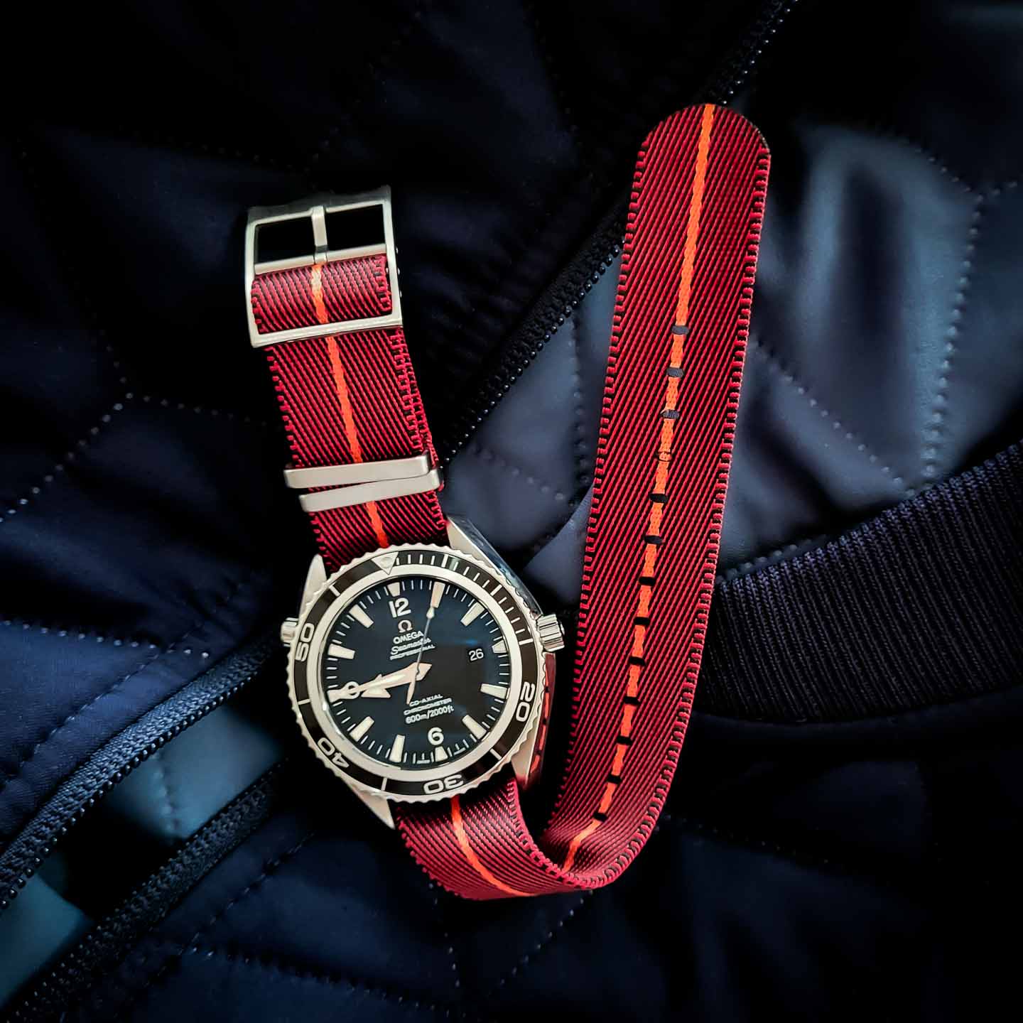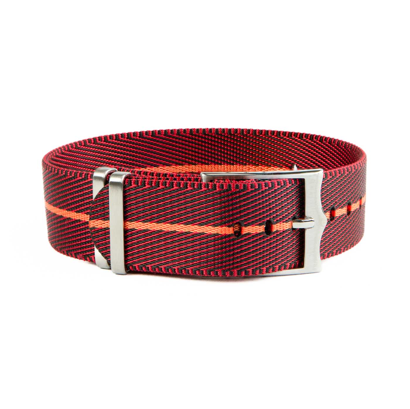 Lækker Single Pass Luksus-rem fremstillet af blødt stof med en flot glans. Single pass-remme er perfekte, hvis man synes, at natoremme hæver uret for højt - da disse remme kun har ét remstykke under uret, giver de derfor en lavere profil på armen/håndleddet. Samtidig har man den samme sikkerhed som med natoremme - hvis én remstift går i stykker, så sidder uret stadig sikkert i den anden remstift og kan derfor ikke tabes.