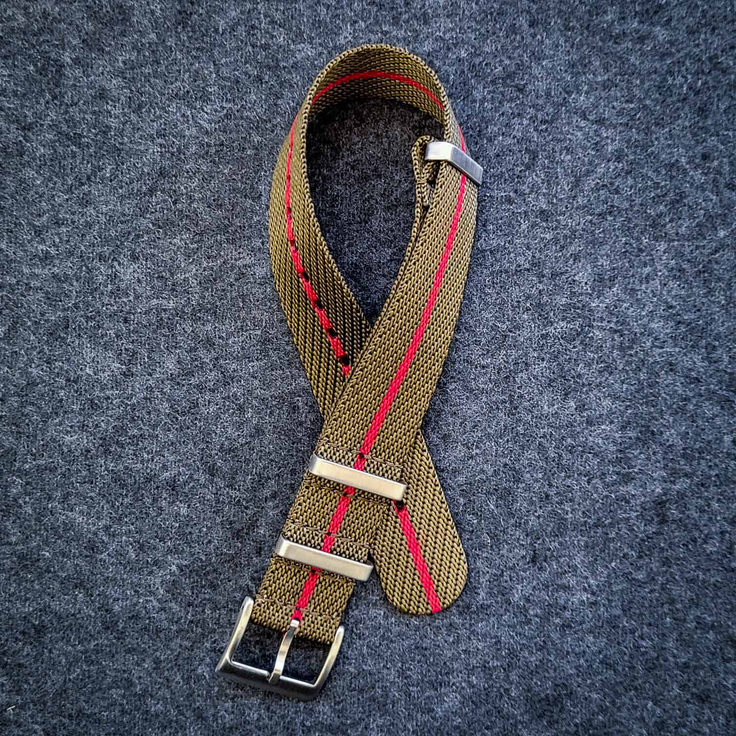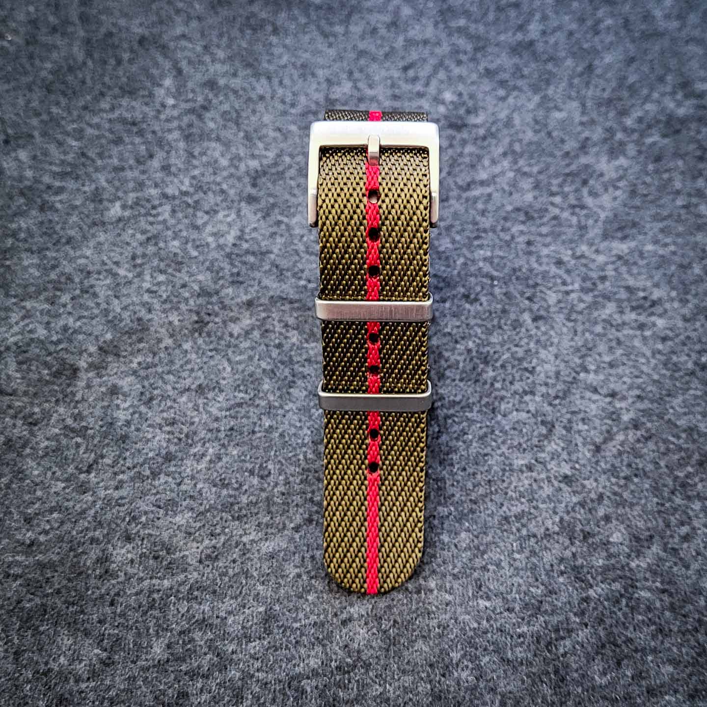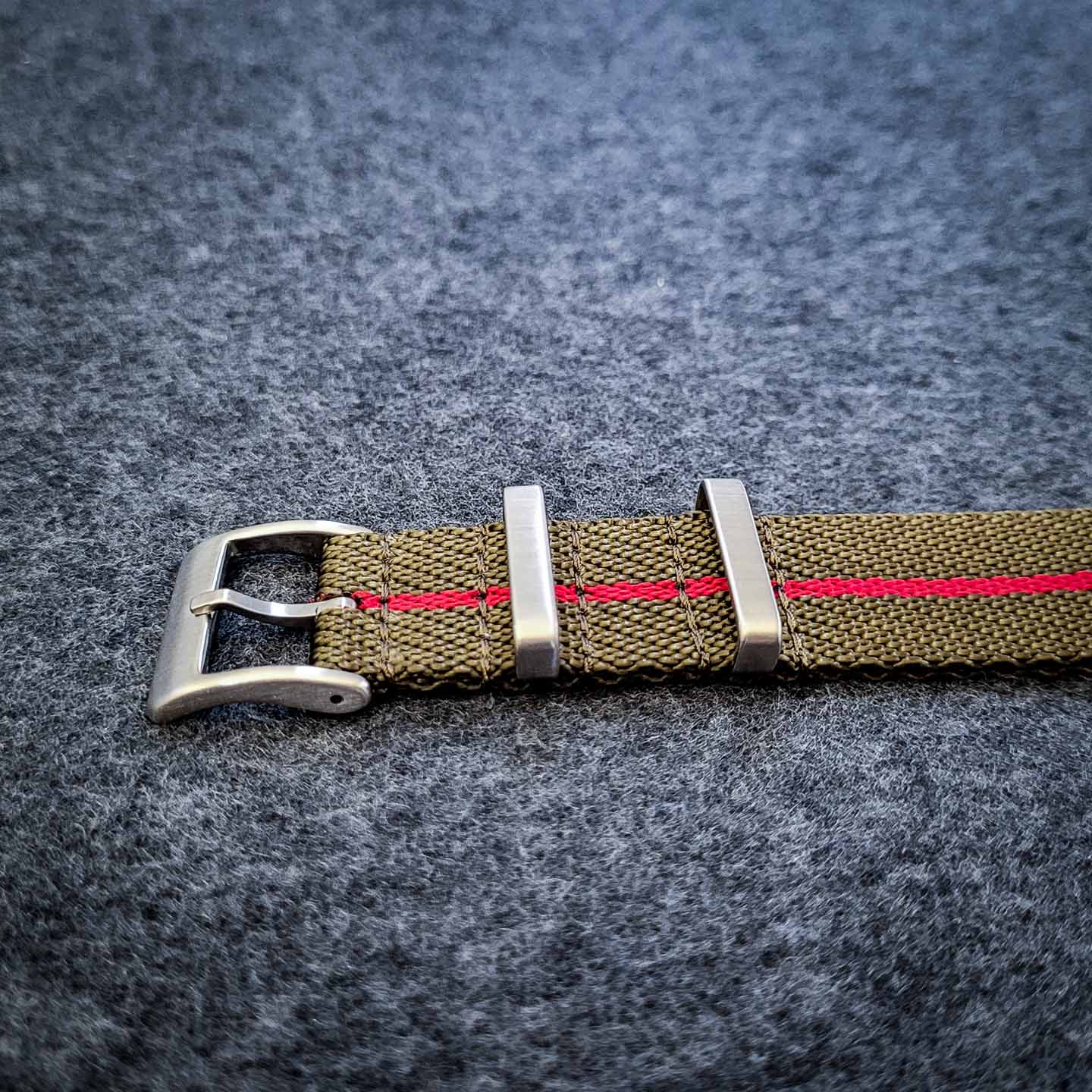 Natorem i Tudor-stil er inspireret af britiske regimenters unikke brug af farver og mønstre til at skabe identitet og korpsånd, der er særegen for netop det givne regiment. Urremmen fås i 18, 20 og 22 mm, den er 1,2 mm tyk og fremstillet af nylontråd, der gør den komfortabel og giver en let glans i stoffet. Spændet er i børstet, rustfrit stål.