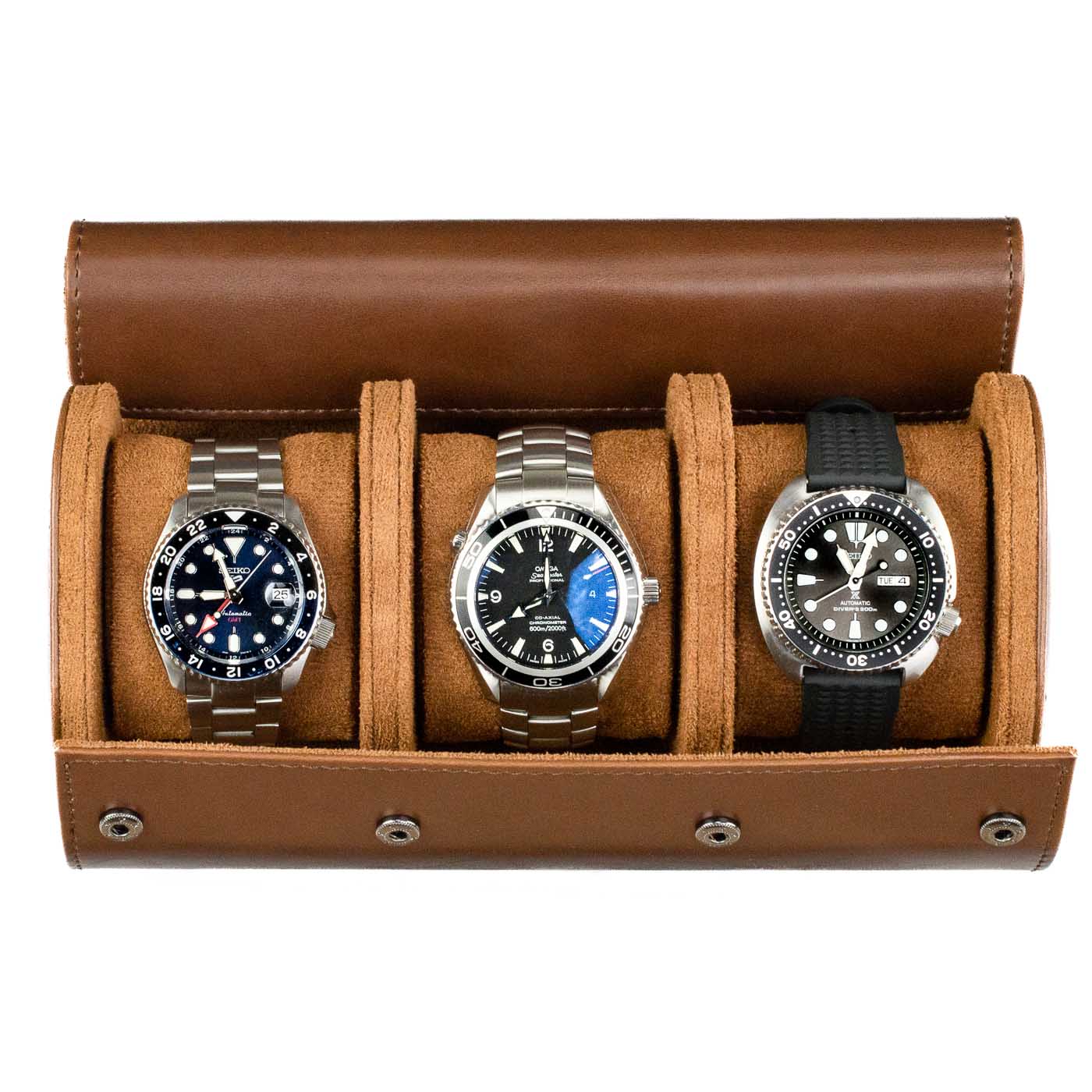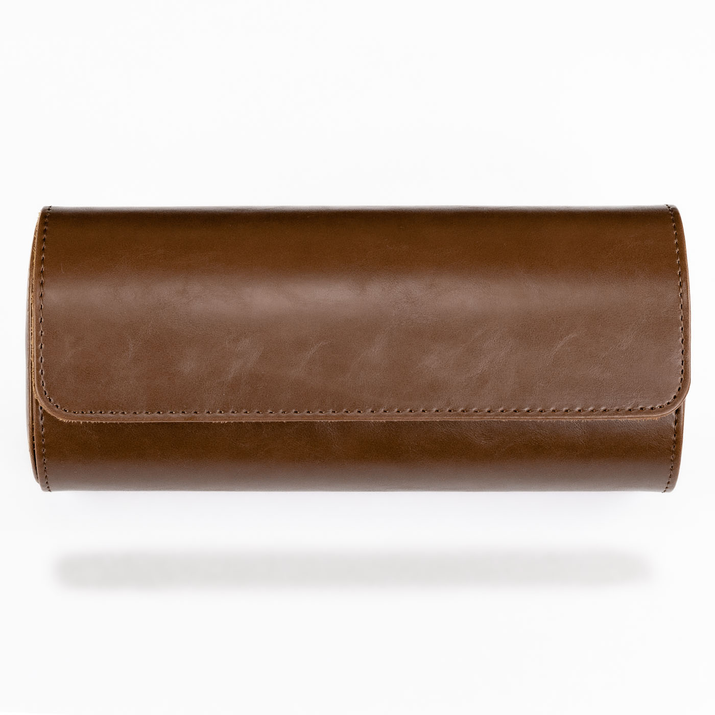 Denne brune watch roll eller urrulle til tre ure er vores bud på en value-for-money-løsning til sikker opbevaring af ure, uanset om de ligger i skuffen, på kommoden eller i kufferten, når du er på farten. For hvor en traditionel urkasse er nok er lækker, når den står statisk på et bord eller kommode, så er den ingenlunde så praktisk eller alsidig som en watch roll.