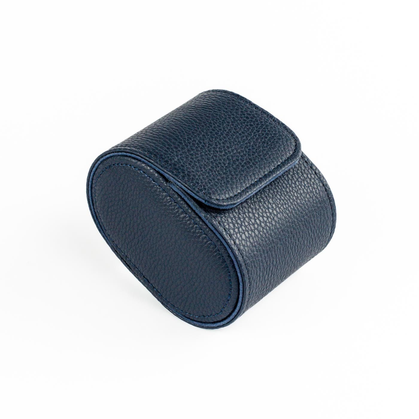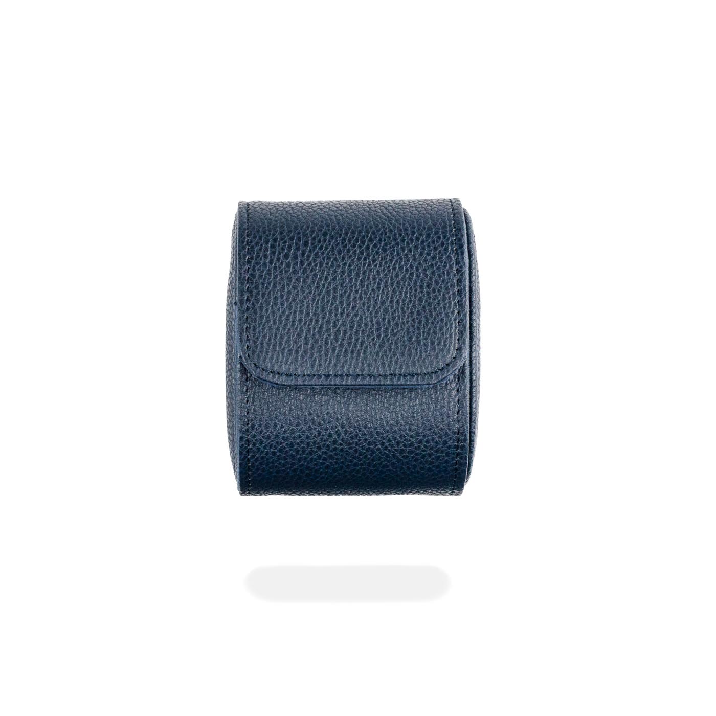 Denne blå watch roll eller urrulle til ét ur er vores bud på en value-for-money-løsning til sikker opbevaring af ure, uanset om de ligger i skuffen, på kommoden eller i kufferten, når du er på farten. For hvor en traditionel urkasse er nok er lækker, når den står statisk på et bord eller kommode, så er den ingenlunde så praktisk eller alsidig som en watch roll. Kunstlæderet er bøffelpræget, så det har et lettere rustikt tesktur og udseende.