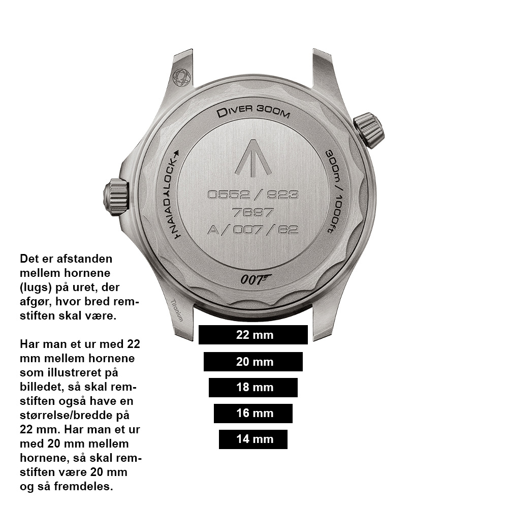 Ti remstifter med dobbelt krave i rustfrit stål fra tyske Beco Technic der passer til ure med mellem 10 og 26 mm mellem hornene (lug width).