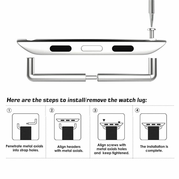 Hvorfor binde sig til den måde, Apple har bestemt, urremme skal fæstnes på et Apple Watch? Denne remadapter giver dig frihed til at bruge traditionelle urremme med dit Apple Watch. Så hvis du allerede har skuffen fuld af lækre, traditionelle urremme eller har øje på en ny, der ikke kan fås til Apple Watch, så er denne lille adapter løsningen. Adapteren er designet med to rør, der skrues af og indsættes i remmen, hvorefter man skruer rørene på igen og sætte hele remadapteren fast i sit Apple Watch.